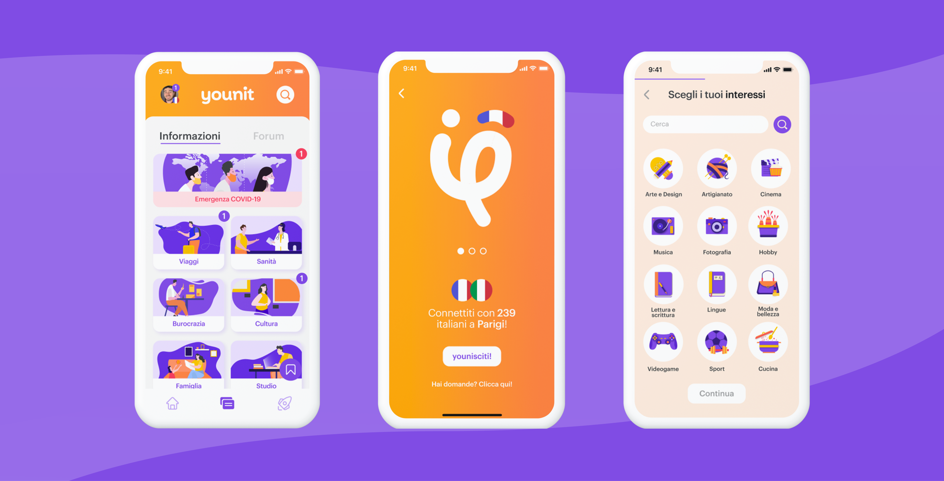 Younit provides a guide of information divided by categories containing the latest regulations relating to life abroad and emergency. You can access individual categories or search for a particular topic in the search bar.